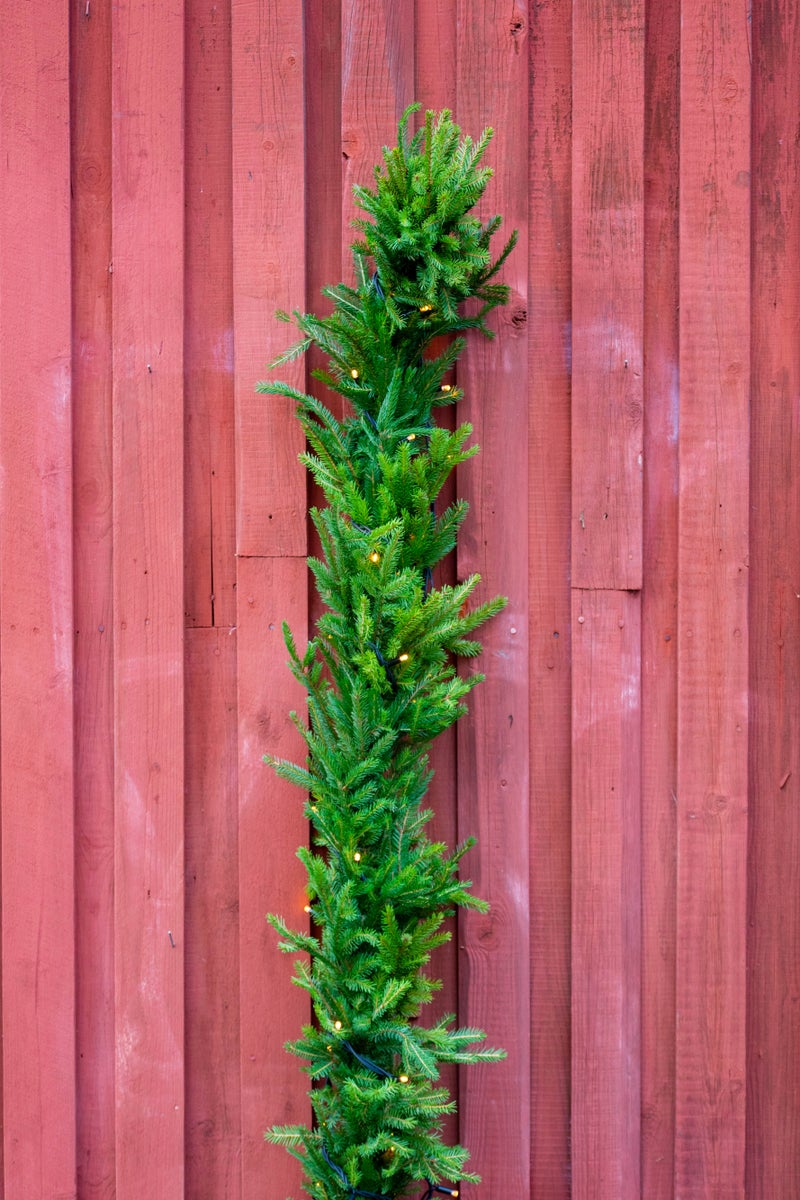 Kuusiköynnös syntyy suomalaisesta metsästä ja käsityön taidosta. Se tuo joulun tuoksua ja tunnelmaa – upea yksityiskohta, joka ei jää huomaamatta. Kuusiköynnös soveltuu parhaiten ulkokäyttöön, mutta pysyy hyvänä lyhyempiä aikoja myös sisätiloissa.